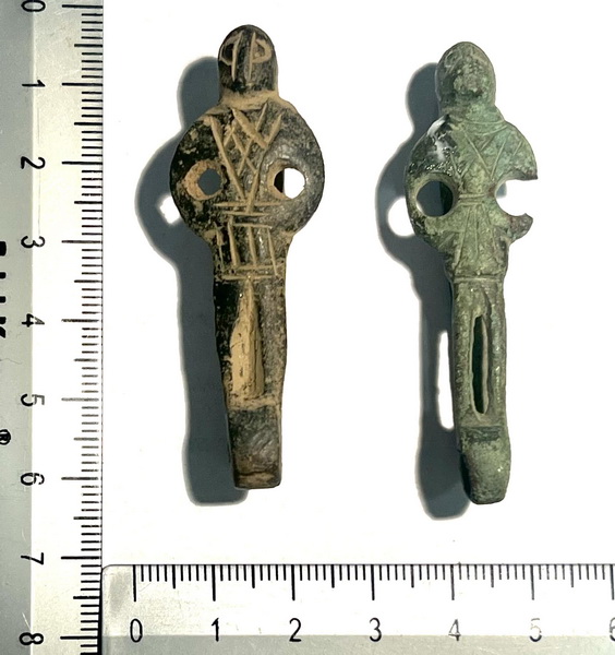 Szlufka, o wysokości 56 mm, zachowana jest w bardzo dobrym stanie. Jej frontalny panel ma formę antropomorficzną, gdzie głowa postaci jest schematycznie zaznaczona, a ręce oparte na biodrach tworzą łuk, z otworami o średnicy 4 mm. Na torsie i biodrach widoczne są ukośne i poziome nacięcia, które tworzą schematyczny strój typowy dla epoki późnego gotyku. Pod strojem znajduje się pionowy otwór o długości 13 mm, a bezpośrednio pod nim otwór przeznaczony do zawieszania kluczy lub sakiewki o średnicy 4 mm.
